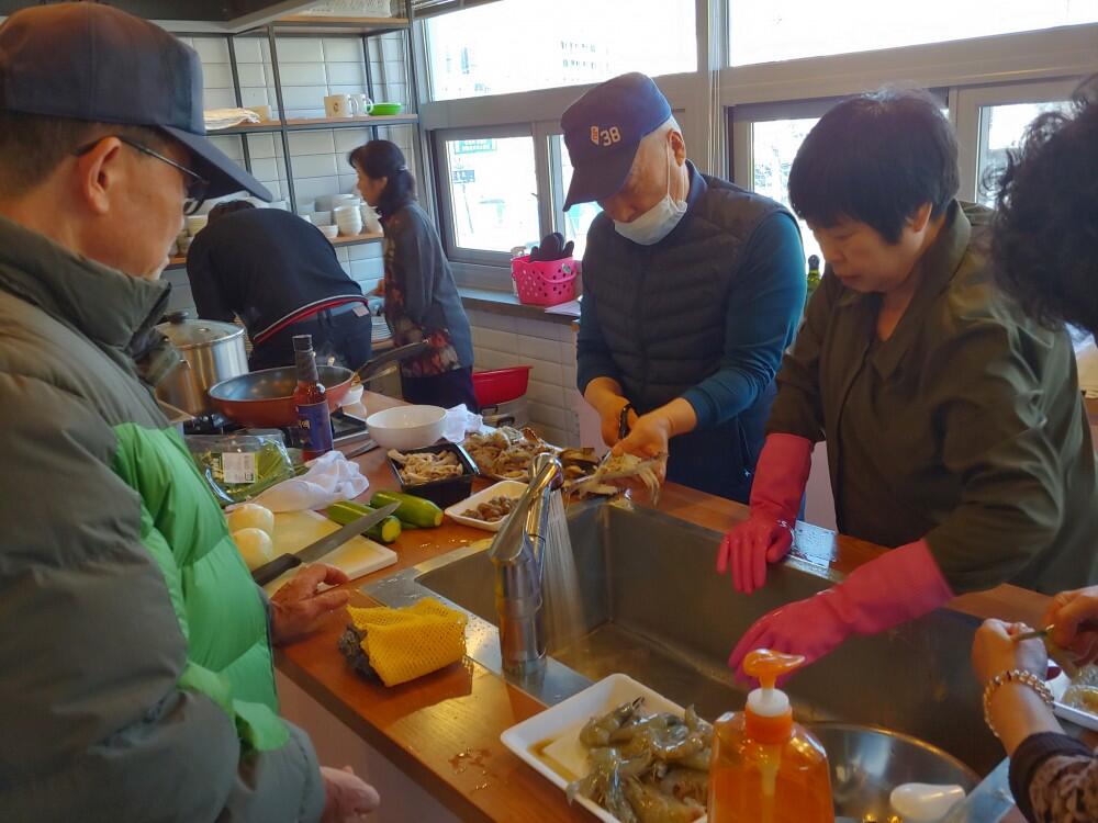 3팀으로 나뉘어서 한팀은 새우 꽃게탕, 다른한팀은 돼지고기 두루치기, 나머지 한팀은 부대찌개 요리를 만들어서